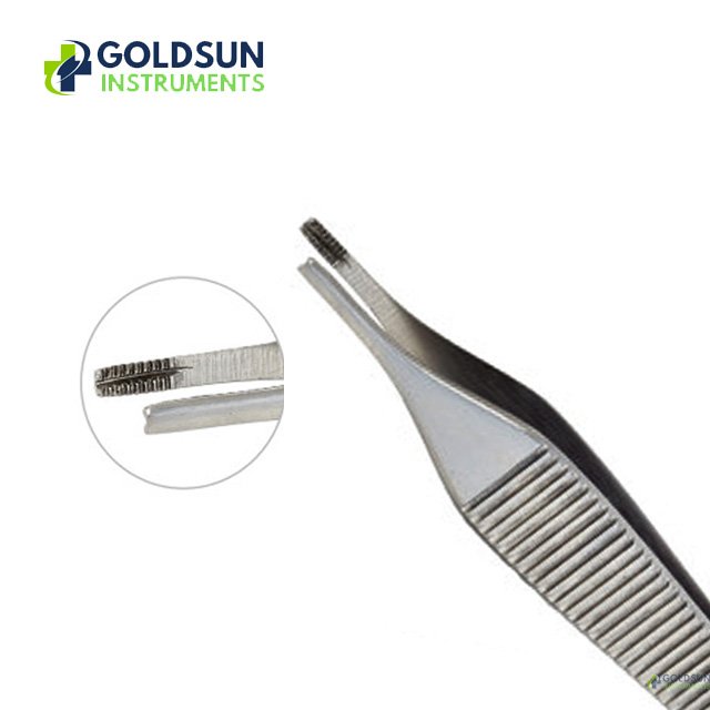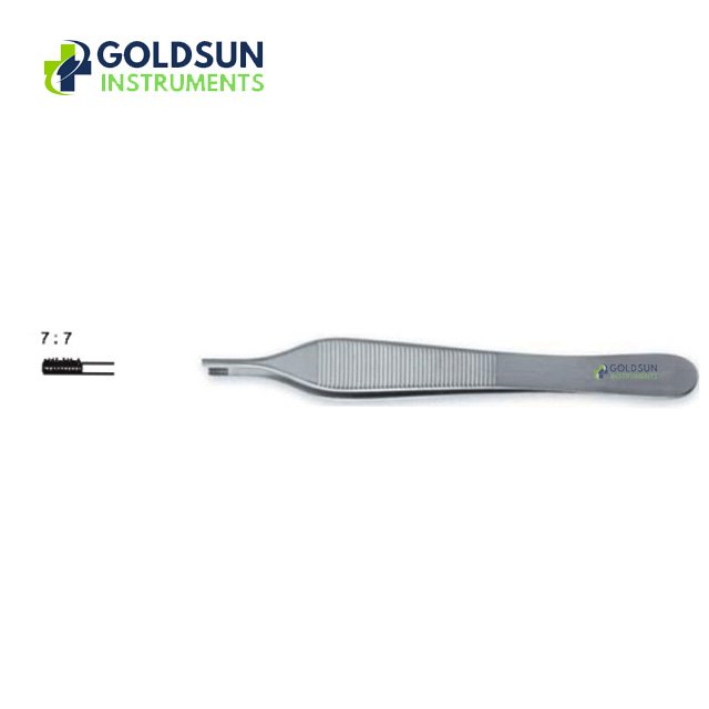 The Adson Brown Forceps 12cm – 7×7 Teeth by GoldSun Instruments is a precision instrument commonly used for grasping and holding delicate tissue during surgical procedures. Its 7×7 interlocking teeth provide an exceptionally firm grip, minimizing tissue slippage without causing trauma.