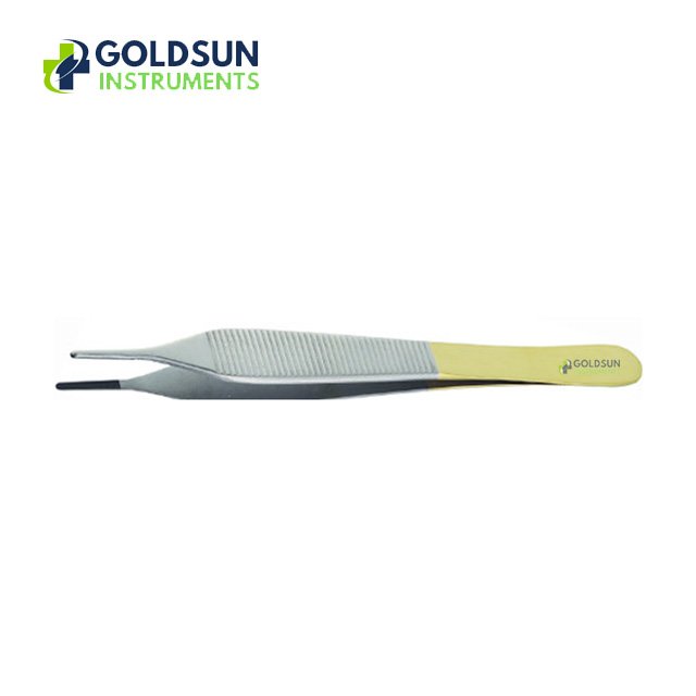 The Adson Forceps 12cm by GoldSun Instruments are designed for delicate tissue manipulation during precision procedures. Available in Smooth tip and 1×2 Teeth tip, both options can be equipped with Tungsten Carbide (TC) inserts for a stronger, longer-lasting grip.